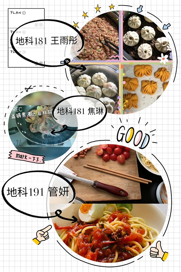 活动期间,同学们每天按时打卡,分享自己每天的劳动成果。其中地科181班的焦琳同学采用短视频的形式记录下自己每日的做饭过程,并晒出满意成果,让同学们从中学习到一些做饭小技巧,提高自身厨艺;海洋175班的张妍云同学则是以图文结合的方式记录下自己每日帮助父母一起做家务的过程,其主动协助父母,参与家务劳动,促进了和睦的家庭氛围;地科191班的管妍同学则会定期重新布置家庭环境,分享自身忙碌过后收获的成就感,改善心情。在活动中,主办部门成员还搜集整理出了“家务小妙招”集锦,在同学们中广泛分享,使同学们切实增强自身生活技能,为居家防控提供科学指导。