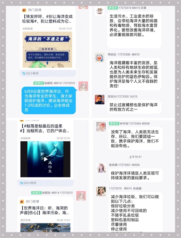本次世界海洋日“微”讨论主题活动,进一步坚定了广大青年学生做真正海洋生态维护者的信念,大家纷纷表示,要努力学习专业知识,为实现中华民族伟大复兴的中国梦贡献青春力量。