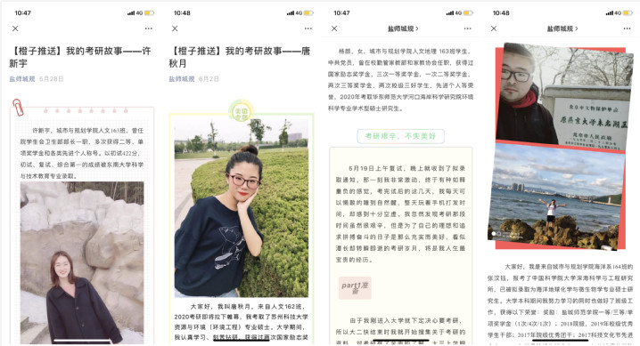 听经验分享,树成长目标。6月13日晚,我院在腾讯会议APP举办“我的考研考公故事”线上分享会,已考取东南大学、华东师范大学、中国海洋大学等知名高校的20名研究生和考取2020江苏省名校优生选调生代表进行了分享。此外,我院微信官微推出毕业特刊“我的考研故事”“优秀毕业生事迹展”“学霸寝室”,通过发挥朋辈影响作用,以榜样的力量鼓励学院学生坚定学习信心,实现自我梦想。