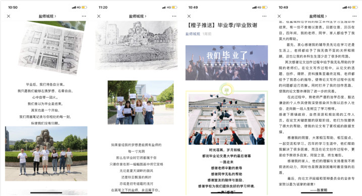 做深情告白,悟成长温暖。为表达城市毕业学子对母校深情的留恋,学院人文专业学生自发通过专业手绘的方式将学校的每一处角落呈现在画纸上,用特殊的方式对母校告白。学院其他专业毕业学生通过论文致谢页、明信片、微视频等形式感恩母校、感谢师长、感谢父母,回忆温暖的瞬间。