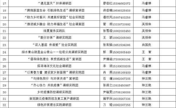 我院历来重视大学生暑期社会实践工作,已连续三年获得团中央项目立项,今年暑期,学院共组建了32支社会实践团队,重点围绕疫情防控、乡村振兴、城乡融合、乡村治理、节能减排、校友寻访等主题,线上线下创新开展社会实践,让广阔的农村土地成为大学生认知国情、坚定理想信念的生动教材,在社会实践过程中积极培育和践行社会主义核心价值观。