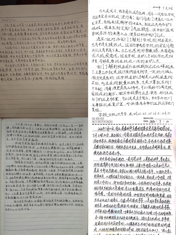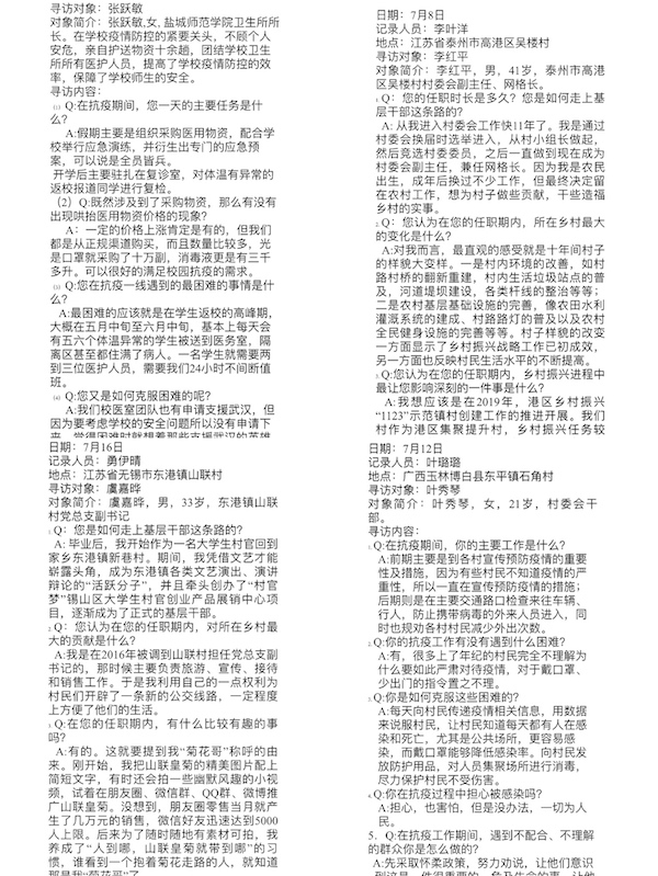 活动中,志愿者们通过拍摄现场视频、照片,填写调研日记等形式详细记录下采访过程。来自江苏省昆山市第一人民医院的护士杨晴琪接受了志愿者周存的采访,详细讲述了自己支援武汉,抗击疫情的故事。在谈到“责任与担当”话题时,杨护士表示:“作为一名医护人员,我有我的责任和担当,我会在最危险的时候冲在最前头,义无反顾地去帮助那些需要帮助的人。”