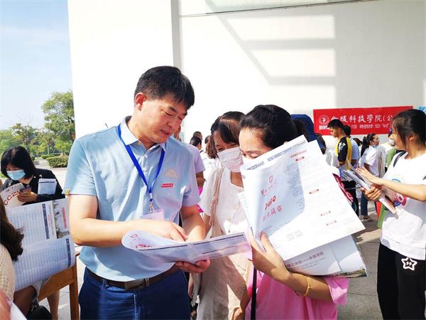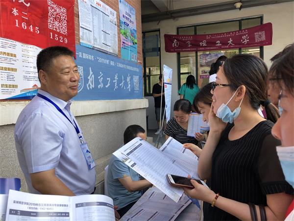 在招生宣传过程中,副校长崔刚亲临阜宁中学招生咨询现场,与考生家长亲切交流,解答考生家长疑惑。