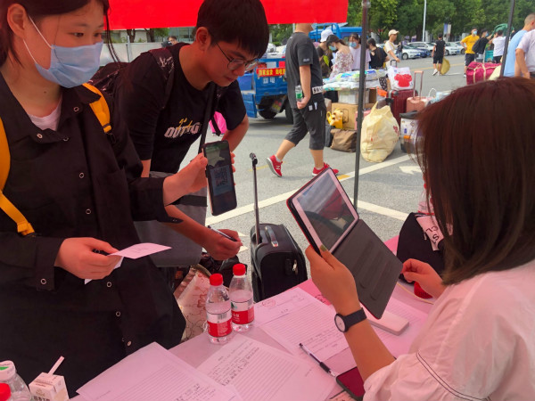 “欢迎可爱的小橙子们回家!”学院设立党员责任岗、组建志愿服务队,他们不畏高温“烤”验,始终坚守报到大本营,核对“我在校园”14天健康打卡,扫描返校二维码,查验苏康码,发放宿舍通行证,协助搬运行李,用热情的眼神、温馨的话语和耐心的守候,筑起一道道疫情防控的坚实屏障,给返校学子带来了回家般的亲切感。