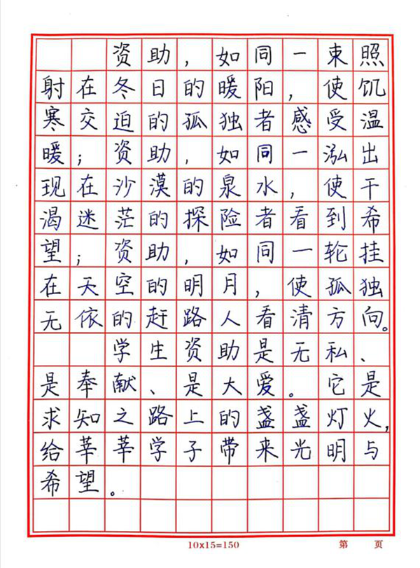 为突出“助学、筑梦、铸人”的根本任务,培养受助学生自立自强、知恩感恩、勇于担当的良好品质,落实《省教育厅办公室关于开展2020年“苏乡永助”资助育人主题活动的通知》,我院于9月8日至15日举办“苏乡永助”资助育人主题活动,面向全院学生征集优秀的书法作品。