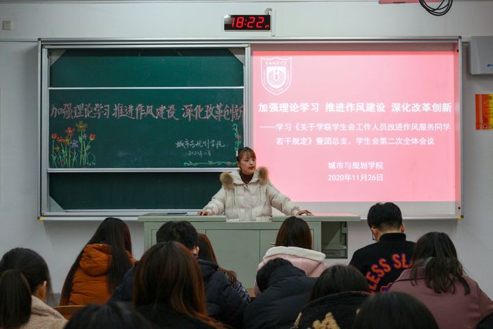 为进一步推进团学组织作风建设,深化改革创新,11月26日晚,我院在笃行楼A212教室召开团总支、学生会第二次全体成员大会,会议由团总支书记王寅主持,团总支学生会全体学生干部参加会议。