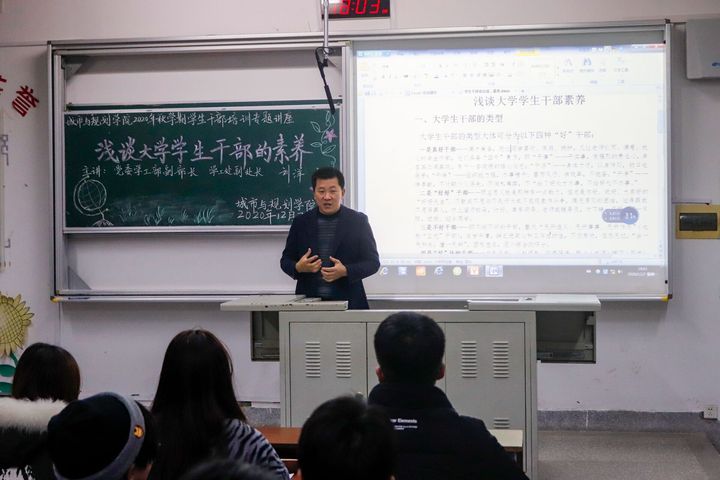 为进一步加强学生干部队伍建设,12月7日晚,我院于笃行楼A108教室举办学生干部培训专题讲座。校党委学生工作部副部长、学生工作处副处长刘洋出席,并为全体学生干部开设《浅谈大学学生干部素养》专题报告。报告会由院党总支书记王广飞主持。