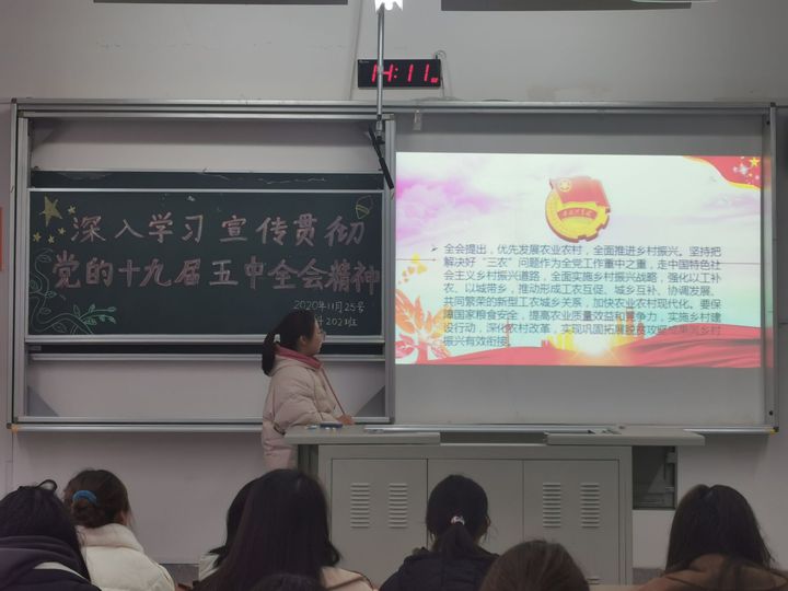 为深入学习贯彻党的十九届五中全会精神,帮助青年学生筑牢思想之基、补足精神之钙、扬起信仰之帆,11月25日,我院各团支部于笃行楼开展了“深入学习贯彻党的十九届五中全会精神”主题团日活动。