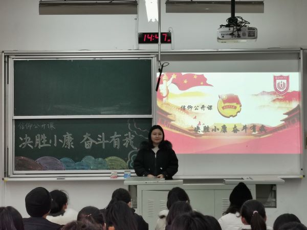 为深入学习贯彻习近平新时代中国特色社会主义思想,激发青年学生的爱国热情和奋斗精神,12月23日下午,我院团总支于笃行楼组织开展“决胜小康,奋斗有我”主题教育系列活动。