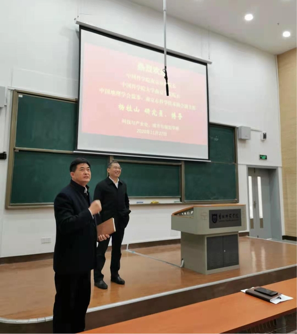 11月27日,城市与规划学院邀请中科院南京分院院长杨桂山研究员,在我校城资楼A200学术报告厅举行了一场题为“长三角一体化与江苏融合发展”的专题学术报告会。报告会由院长李传武教授主持,城市与规划学院全体师生聆听了报告。