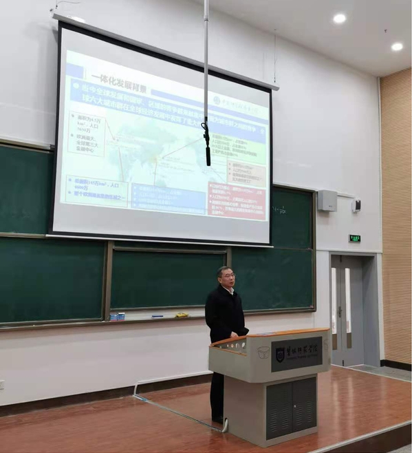 长三角覆盖“三省一市”四个省级行政区,约占全国四分之一经济总量,是我国经济发展最活跃、开放程度最高、创新能力最强的区域之一,在国家现代化建设大局和全方位开放格局中具有举足轻重的战略地位。杨桂山院长站在世界城市群的高度,以经济地理学的视角,阐述了长三角一体化发展面临的机遇与挑战。重点对交通一体化、产业一体化、市场一体化、生态环境一体化和治理一体化五个方面存在的瓶颈问题进行了深入剖析,并结合江苏实际,提出了未来融入长三角发展的思路和举措。交流环节,同学们踊跃提问与杨院长进行了互动交流,现场气氛热烈。