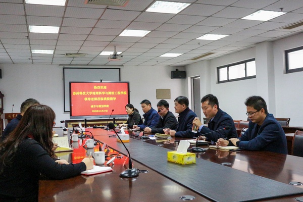 11月27下午,苏州科技大学地理科学与测绘工程学院陈德超副院长、杨朝辉副院长、尚正永教授和许艳博士一行到我院调研交流。城市与规划学院李传武院长、张华兵副院长、朱天明副院长和部分骨干教师参加了交流活动。