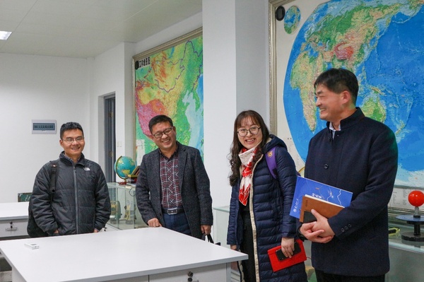首先,院长李传武教授对杨朝辉副院长一行的来访表示热烈欢迎,简要介绍了学院发展情况和专业建设情况,详细介绍了地理科学专业审核评估的做法和体会。接着,双方就学科建设、教学改革、科学研究、师资队伍建设、社会服务、研究生招生和“十四五”规划等问题进行了深入交流。交流结束后,杨朝辉副院长一行参观了地理科学实训室、地质标本室、天象馆等专业实践实训中心,陈德超副院长表示,苏州科技大学地理科学与测绘工程学院是成立不久的年轻学院,希望今后两个学院加强交流和合作。