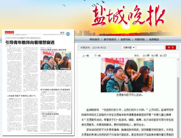 1月5日,《盐城晚报》A03版报道我院“关爱儿童 让爱暖冬”寒假社会实践活动。