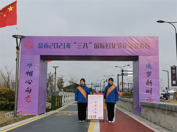 3月8日,由盐城市亭湖区妇联举办的“巾帼心向党,逐梦新时代——环湖健步行”活动在中华海棠园成功举行,我院志愿者全程参与了此次活动。