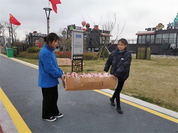 活动中,我院志愿者主要负责物资的打包、搬运,奖品的发放,活动关卡的引导工作。早晨七点,志愿者准时到达各自负责的岗位,帮助参与健步行的“女神”们做好赛前准备活动。有的为参赛选手们测量体温,发放比赛物资;有的为选手们送上一杯杯热气腾腾的姜茶,缓解疲劳;有的把鲜花运送到舞台中央;有的手握队旗,引导选手们过五关斩六将,顺利完成此次健步行活动。