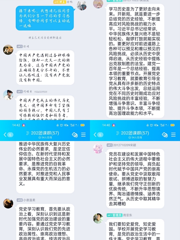 本次团日活动的开展,加深了同学们对党史的了解,同学们纷纷表示要坚定理想信念,明确自身所肩负的责任与使命,励志勤学,为伟大的共产主义事业而不懈奋斗。(文:左纯;图:各团支部; 审核:王寅)