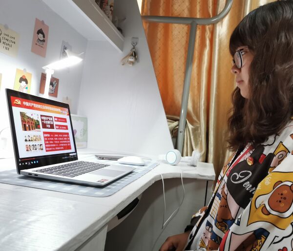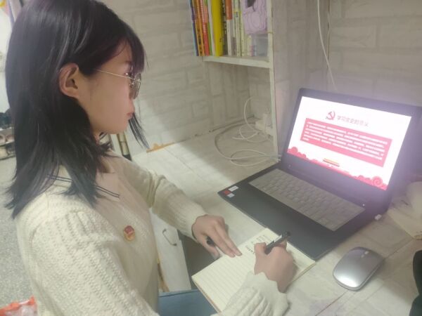 在地科202团支部,团支书组织同学观看习近平总书记在党史学习教育动员大会的视频,接着通过线上交流,心得体会分享等方式,深入学习会议精神,关注党史学习教育等主要内容。团支书蒋佳霏同学说:“中国共产党是中国社会主义事业的领导核心,作为当代大学生要知史爱党,不忘初心听党话,牢记党恩,为社会主义现代化建设贡献当代大学生的青春力量。”