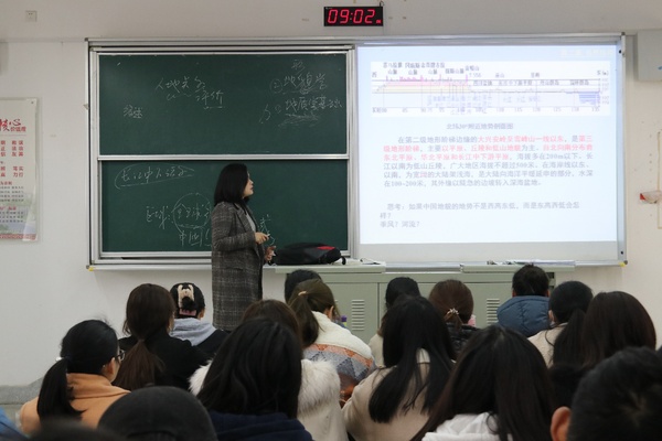 学院领导班子与同学们一起聆听了王晓翠老师讲授的《中国地理》开学第一课。王老师详细讲解了中国三大阶梯的地势差异,重点讲解中国地貌格局的形成过程,分析中国地貌格局对自然景观的作用和影响。课堂教学重点突出,难点突破,师生进行了有效互动。听课老师边听边记,听课结束后李传武院长等与王晓翠老师进行了深入交流,对王晓翠老师的教学准备、授课方式、师生互动等给与了充分肯定,并就讲课技巧、教案设计、加强课程思政元素融合课堂教学等提出了指导意见。