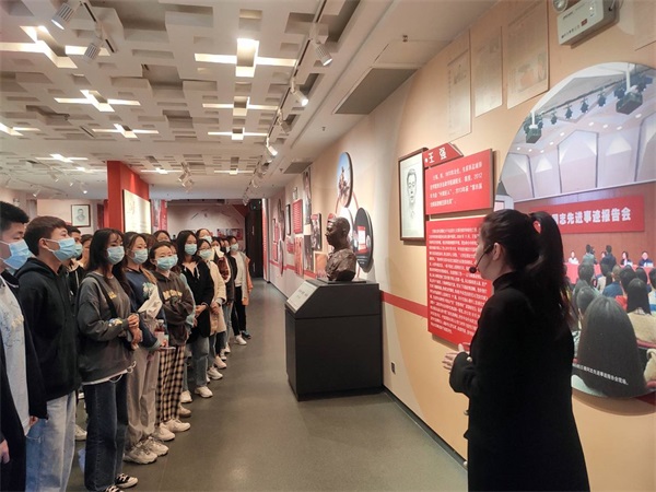 活动伊始,同学们集合入馆跟随解说员一齐观看盐城好人故事的展品。参观中,一张张真实的图片、一段段质朴的文字、一件件鲜活的事例都让同学们深受触动,特别是在“敬业奉献”好人一列的我校王强教授,与病魔苦苦抗争4年,把工作延续到了生命的最后一刻,用心血浇灌每一位学生,用生命守望马克思主义阵地的事例。同学们纷纷表示:“作为王强创建班级中的一员,我们将继续学习王强精神,弘扬新时代好人精神,践行社会主义核心价值观,担起时代赋予的责任和使命,以王强教授为楷模,励志勤学,砥砺奋斗,让青春之花绽放在祖国最需要的地方。”