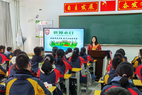 水文化研究协会走进盐城市明达初级中学,开展“护水更亲水 共促水长流”主题活动。通过讲解“世界水日”主题PPT,倡导同学们养成良好的节约用水习惯,增强惜水爱水护水意识。初一(13)班李梓涵同学说:“我认识到水是生命之源,作为青少年应爱水、节水、护水。我也会尽自己一份绵薄之力,为节水保卫战做出一份贡献,愿我们的家园永远碧水长流。”本次活动得到“节水中国 你我同行”主题宣传联合行动的专题报道。