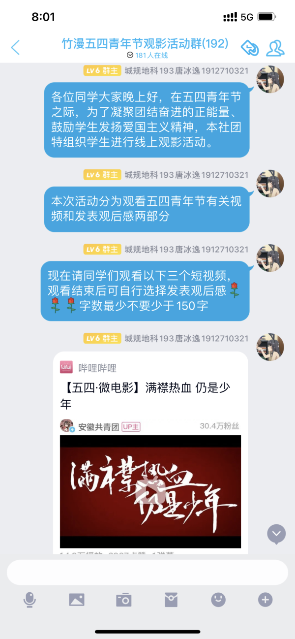 值此五四青年节来临之际,为了进一步弘扬五四爱国精神,倡导文明新风,彰显时代精神和青春价值,我院竹林漫步动漫社于5月1日至5月7日在线上举办“承五四精神,扬青春风采”五四青年节主题观影活动暨海报设计大赛。
