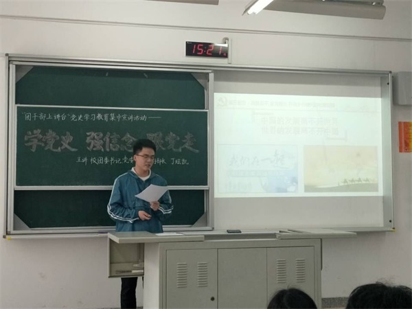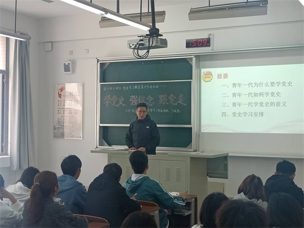 活动中,丁炫凯围绕“为什么要学党史”“如何学党史”“学党史的意义”三方面,带领青年学生走进党史、学习党史、感悟党史。他强调:“青年学生只有加强对党史的学习,才能了解中国共产党的苦难辉煌历程,才能明确中国共产党和中国未来的发展方向。”最后,丁炫凯寄语青年学生,他指出:青年学生要在党史学习中砥砺品格、坚定信仰,增强奋进力量,担负起实现中华民族伟大复兴的重任。