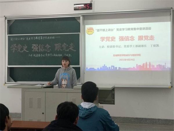 为迎接中国共产党成立100周年,引领广大团员青年学习党史、了解党情,坚定跟党走的信念。4月28日下午,我院于笃行楼开展“学党史、强信念、跟党走”党史学习教育。校团委书记、党委学工部副部长丁炫凯出席活动,活动由院团总支书记王寅主持。