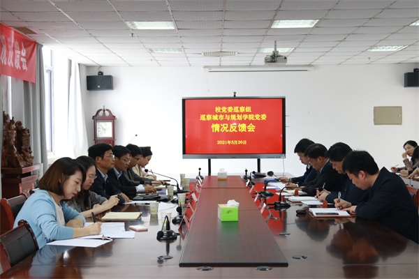 2021年5月26日下午,校党委巡察组巡察城市与规划学院党委情况反馈会在笃行楼A410召开。校党委副书记、纪委书记、省派驻监察专员刘必清出席会议并讲话,校党委巡察组全体成员、城市与规划学院党政班子成员、全体教职工及学生党员代表参加会议。反馈会由城市与规划学院党委书记王广飞主持。