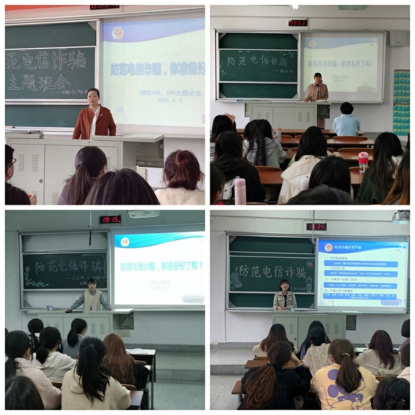 加强安全宣传深度,筑牢思想防线。学院通过主题班会、宣讲会、知识竞赛等形式,强化学生法治安全思维。学院组织各班级召开“防电信诈骗”主题班会、“法治安全”主题班会等主题班会;组织开展“全民国家安全教育日”主题活动,通过学院微信公众号向学生推送安全教育指南,组织法治安全宣讲活动,宣传法制安全知识,并组织安全知识竞赛活动,切实提高学生的安全防范意识、法制意识和自我保护意识。