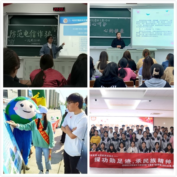 创建班级学生开展法治安全教育暨防电信诈骗、“用‘心’呵护心的健康”等主题教育活动;先后走进盐城科技馆和阳光社区进行“为科学发声”“凝聚青春力量 共建美丽江苏”志愿服务;走进海盐博物馆开展“走进盐城历史,传承海盐文化”社会实践;走进先锋社区开展国际生物多样性日主题宣传;前往盐城市伍佑中学开展“探功勋足迹,承民族精神”主题宣讲;班级志愿者先后助力亭湖区“巾帼心向党,逐梦新时代——环湖健步行”主题活动、丹顶鹤国际湿地生态旅游节开幕仪式,在投身实践中提升责任担当,推动班级创新发展。