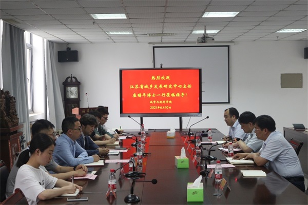 6月10日下午,江苏省城乡发展研究中心主任崔曙平博士、副主任李红波博士一行莅临我院,调研指导江苏省高校哲学社会科学重点研究基地苏北农业农村现代化研究院工作情况。交流会由李传武院长主持,我院党委书记王广飞,我校科技与产业处副处长卢东祥,我院副院长朱天明以及苏北农业农村现代研究院部分研究人员、学生代表参加会议。