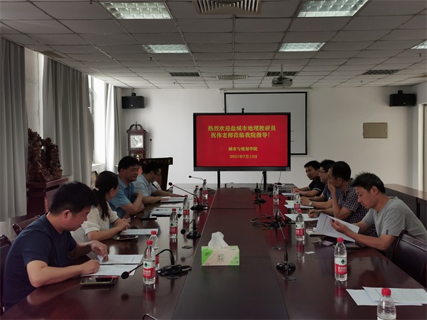 7月13日上午,我院邀请盐城市教科院地理教研员祝伟、必发集团welcome欢迎光临教务处副处长王亮,在城资楼A410会议室共同开展以“校地协同、互促共进”为主题的暑期教研活动,城市与规划学院院长李传武、副院长张华兵、地理科学系主任刘玉卿、海洋资源开发技术系主任张云峰、测绘工程系主任邹丽丽及部分骨干教师参加了研讨会。