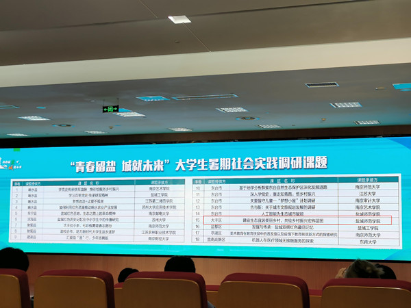 7月19日,由中共盐城市委组织部、共青团盐城市委员会主办的2021年大学生暑期社会实践活动启动仪式在盐南高新区大数据产业园A7座二楼学术报告厅举行,我院5名学生参加了此次启动仪式。