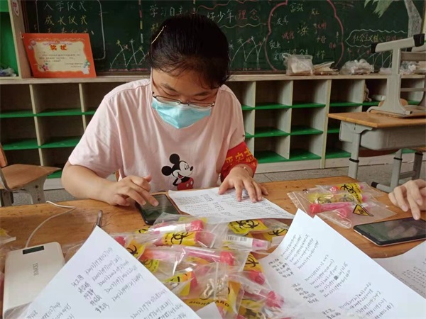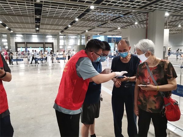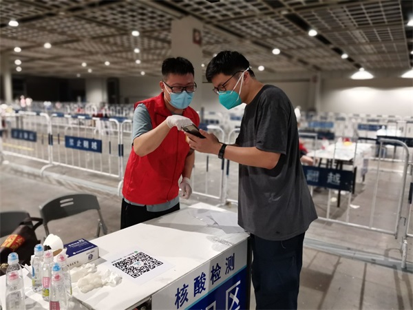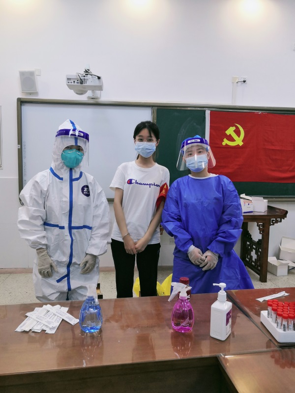 在各街道统一组织下,他们在社区、村口设岗立卡,认真地把好每一道关;他们配合相关部门排查登记、维护秩序、监测体温、后勤保障、防疫宣传;他们不畏高温,坚守一线,受到社区居民的一致点赞。即使身上的“红马甲”湿透了,声音喊到沙哑了,他们始终以热情的态度、细微的服务协助疫情防控高效进行。在宁志愿者地科2010班范天琪同学表示:“疫情仍没结束,作为一名新时代大学生,我们所做的事情与抗“疫”一线医护人员相比微不足道,但这是我们应该做的,我们有义务扛起这份沉甸甸的责任,为社区抗击疫情、全民核酸检测出一份力。”