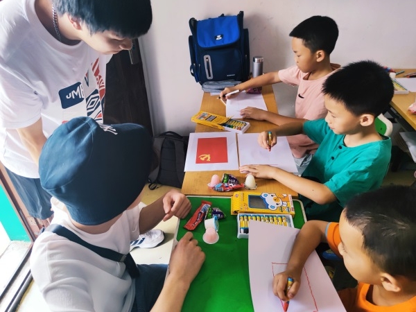26日上午,实践团成员前往浦城中央苏区纪念馆参观红色历史遗迹,感悟当地红色文化,深入了解浦城苏区及革命老区的历史脉络、革命精神和党建成果。成员海洋206班王鑫强谈到:“在参观革命旧址的过程中,我深切体会到历史的重量,要珍惜今天来之不易的幸福,奋发图强、努力实践,尽自己所能去继承和发扬这份红色革命精神!”26日下午,实践团教村里的孩子们画五星红旗,学习党的历史,讲述浦城红色故事,在小课堂里播撒爱国爱家乡的种子,童心向党同心共筑中国梦。