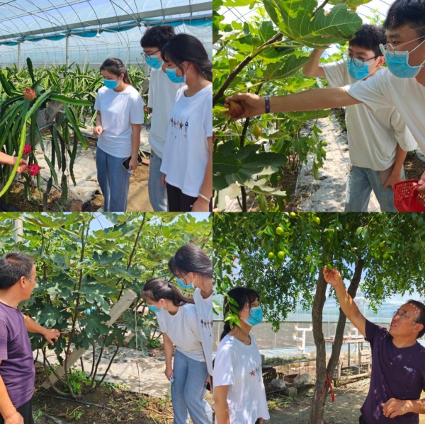 在夏湖果桑园园长张朝丰的带领下,实践团成员详细参观了桑果、无花果、蓝莓、石榴等生态采摘区,认识了其经营模式,了解了由传统农业向特色农业、多元化农业过渡的历程。实践团成员纷纷分享了自己的想法,为夏湖村果桑园未来的发展提出了建议,并表示将会积极宣传、推广其产品和产业转型的经验。
