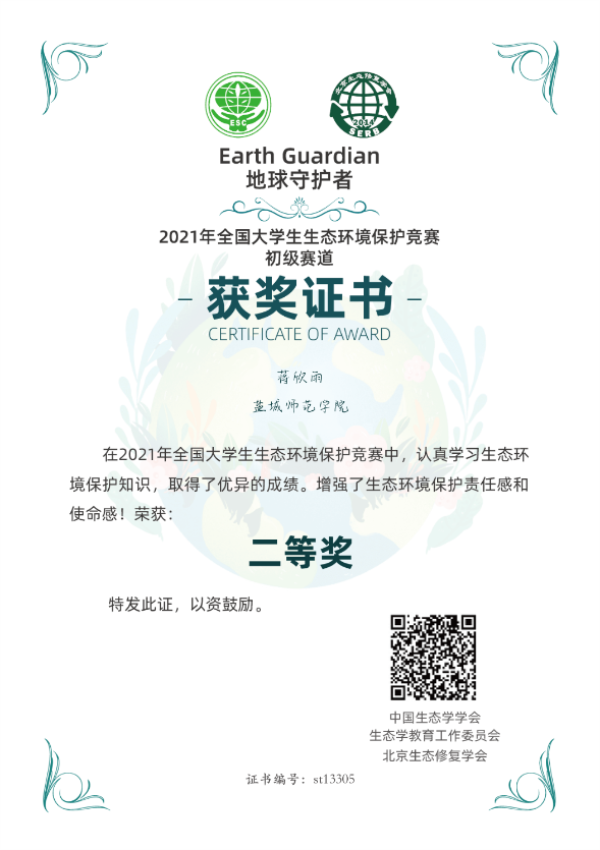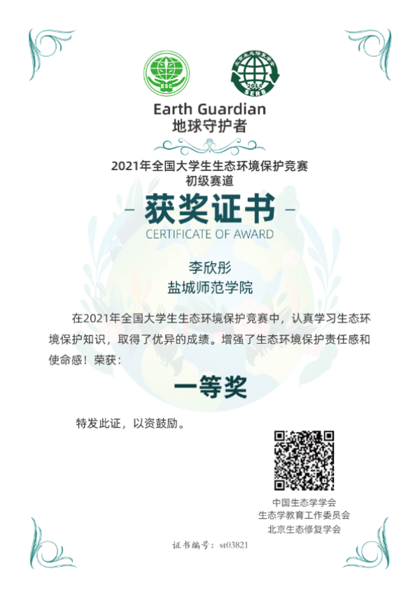 由中国生态学会生态学教育工作委员会、北京生态修复学会主办的2021年全国大学生生态环境保护知识竞赛于8月31日落下帷幕。我院学生精心准备、沉着应对,最终获得一等奖1项、二等奖11项、三等奖4项。其中,19级地理科学专业李欣彤同学在比赛中脱颖而出,获得一等奖。(指导教师团队:李传武、张华兵、刘玉卿、孙小祥、蒋超、徐雅、韩爽、王娟、马随随、王丽丽)。