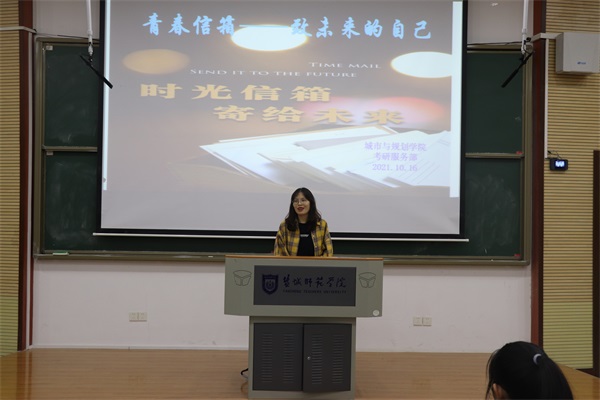 为引领2021级新生坚定理想信念,积极探寻成长目标,合理规划大学学习生活,10月16日,我院考研服务部面向全院新生,于生化楼117举办了“青春信箱-致未来的自己”活动。