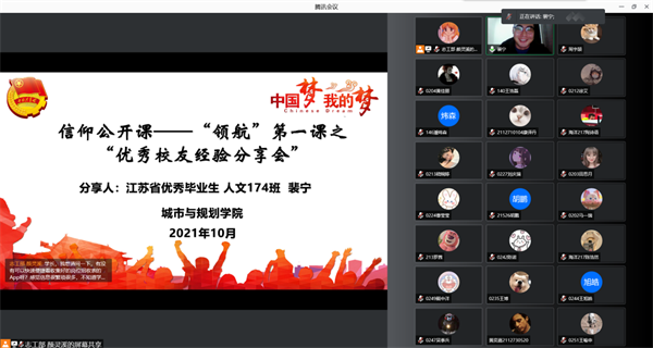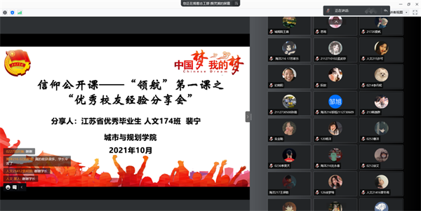 为树立学习模范,传递朋辈榜样力量,进一步帮助新生明确清晰的学习目标、提升学习能力以及合理规划学习时间, 10月22日晚七点,我院于线上组织开展领航·第一课之“优秀校友经验分享会”主题活动。