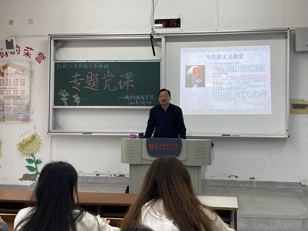 11月17日,我院秋学期入党积极分子培训班在笃行楼A108开设《中国共产党的性质宗旨》专题党课。此次专题党课特邀学校机关党委书记、组织部副部长王广飞主讲,我院2019级、2020级入党积极分子参加此次专题党课。本次党课由我院党委书记郝保成主持。