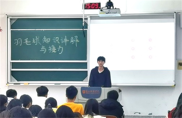此次活动一共分为两部分,第一部分在笃行楼A108,由主持人测绘209的吴学跃同学给大家讲解了羽毛球相关的知识和注意点,讲解过程中,同学们聚精会神,非常认真。这也为接下来的接力活动做好了铺垫。第二部分,同学们在学校东操场集合,开始接力活动。首先,大家组好四人队伍,然后开始颠球接力,活动中,大家都能很好地融入团队,进行合作,也将讲解的知识点在实践中获得体会。场面非常精彩。