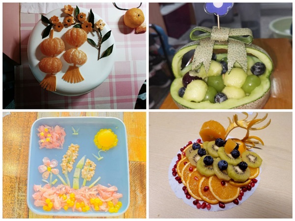同学们积极参与活动,表现出极大的热情,制作了各色各样的水果拼盘。地科211班的周梦艺和戴朱慧同学合作完成了作品《麦穗》,构图明亮充满生机,传递了收获的希望与丰收的喜悦;人文205班马思楠和人文215班杨瑞同学合作完成了作品《心想事成》,运用水果丰富多样,别出心裁,表达了对美好的期盼与追求。她们的创意都有着积极向上美好的寓意。活动结束后,地科213班陈周燕同学表示自己动手拼盘非常有趣,丰富了课余生活,进行了思维的碰撞,有许多的灵感与创意涌现,展示了自己的才华。