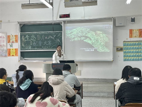 为积极响应保护生态环境,并进一步锻炼同学们的英语口语能力,体会学习英语的乐趣,11月27日上午10点,由我院冲浪英语协会举办的“生态影片配音比赛”活动在笃行楼A109成功举行。
