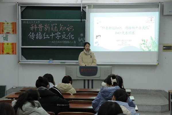 为让同学们了解新冠病毒有关知识和当前世界疫情的流行趋势,弘扬红十字文化,明确红十字在疫情之中的贡献,11月27日晚七点,我院于笃行楼A108开展“科普新冠知识,传播红十字文化”主题知识竞赛。
