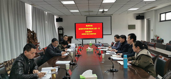 11月30日下午,盐城市社科联党组书记、主席李晓奇,市社科联左建华主任、高齐主任来校,在笃行楼A410会议室听取市级重点智库“盐城城乡融合发展研究院”年度工作情况汇报。校社科处副处长柴江、我院院长李传武、副院长朱天明及智库核心成员参与会议。会上李传武对照“三方协议”和《盐城市重点培育新型智库绩效考核指标》,全面汇报了智库建设一年来取得的成绩和标志性成果。