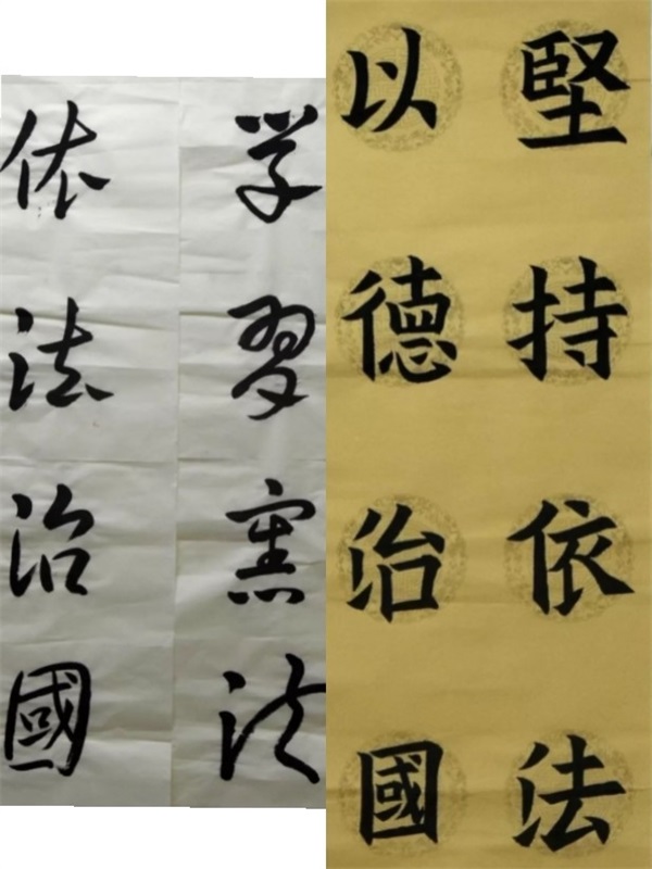 在主题教育活动期间,我院还组织了“国家宪法日”主题书法海报作品征集活动,同学们积极参与,共递交了作品二十余份。其中,地科203班的李榕同学的书法作品《依法治国》,体现了同学对国家宪法日的了解,引导其他同学在以后遇到困难自觉运用法律武器来解决问题,维护自身合法权益。