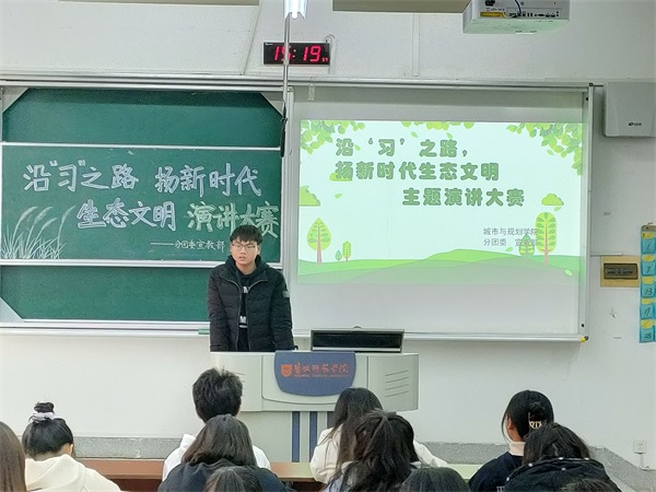 为展现当代大学生的生态文明形象,引导学生积极参与到生态文明建设中来,11月28日下午三点,我院在笃行楼A109举办了“扬新时代生态文明”演讲大赛。