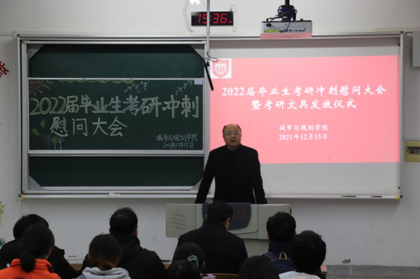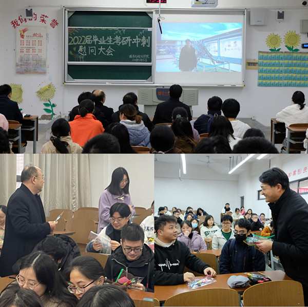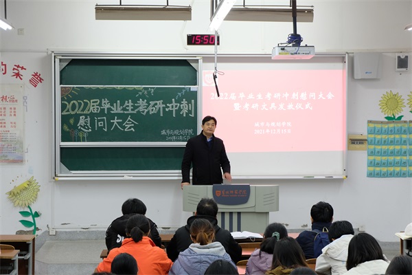 在2022年考研临近之际,为鼓舞考研士气,增强必胜信心,12月15日下午我院在笃行楼A108召开2022届毕业生考研冲刺慰问大会。学院党委书记郝保成,院长李传武,副院长朱天明,全体毕业班班主任及在校考研学生参加会议。会议由郝保成主持。