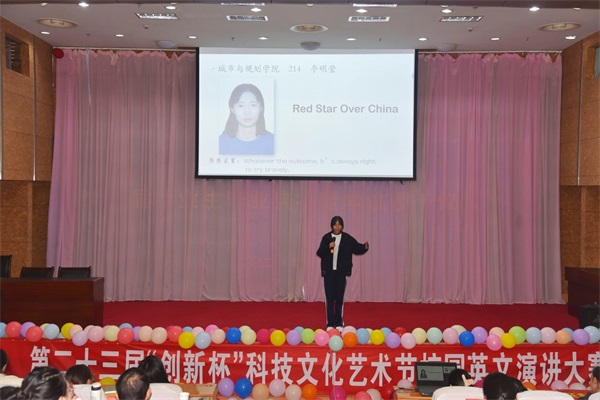 本次大赛以“Red Star Over China”为主题,要求每位选手根据所规定的主题在三分钟内进行脱稿演讲,号召学生结合时事,讲出当代大学生对“红星照耀中国”主题的独到见解。在赛场上,我院李明莹同学精神饱满,热情大方,凭借其充分的准备,流利自然的英语口语获得了在座评委,老师的一致好评,最终获得了三等奖。